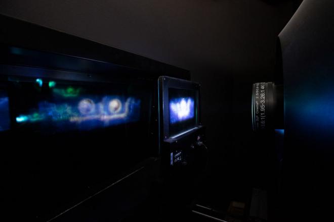 Damit der Zugang zur Marktgasse, auf dem abends die Langenthaler Kinonächte stattfinden, tagsüber frei begehbar bleibt, haben wir eine Leinwand-Konstruktion entworfen und erbaut, die man ganz einfach nach oben kippen kann. Somit wird sowohl der Durchgang, als auch die Sicht auf den Platz freigegeben.